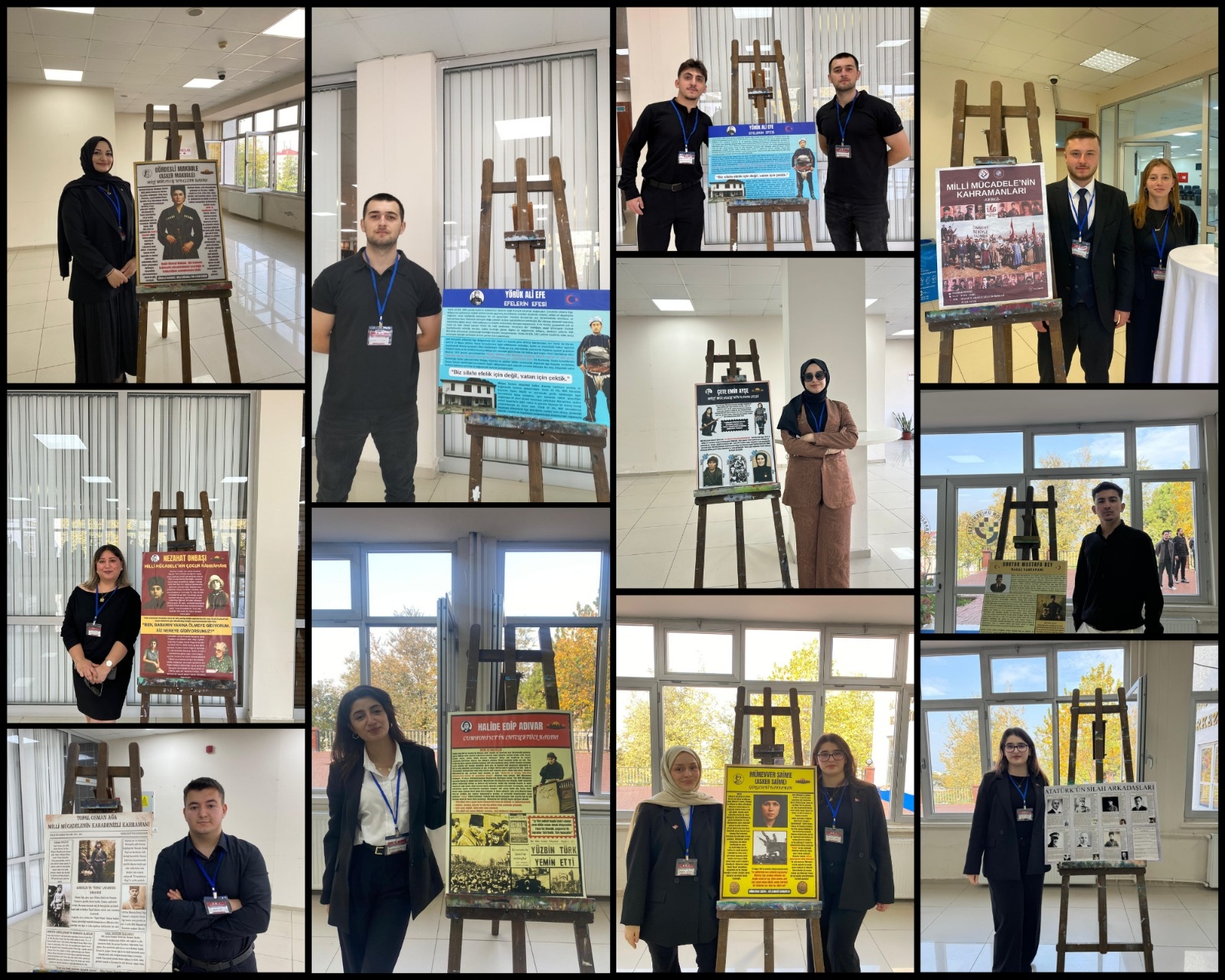 10.11.2025 tarihinde Trabzon Üniversitesi Tarih Kulübü’nün düzenlediği “Milli Mücadele’nin Kahramanları” isimli sergi Mahmut Goloğlu Kültür Merkezi Fuaye alanında gerçekleştirilmiştir. Rektör Yardımcımız Prof. Dr. Atilla ÇİMER, İnsan ve Toplum Bilimleri Fakültesi Dekanımız Prof. Dr. Bilal KIRIMLI ve birçok kıymetli akademisyen ile öğrencinin ziyaret ettiği sergide bilinen savaş kahramanlarının yanında geri planda kalan kahramanlarımızın da tanıtılması hedeflenmiştir. Bu kapsamda Tarih Bölümü öğrencilerinden oluşan ekip üyeleri ilgili kahramanlara ait posterlerin başında ziyaretçilere bilgi vermiştir. Sergiyi düzenleyen ve katılım sağlayan tüm akademisyenlerimize ve öğrencilerimize teşekkür ederiz.