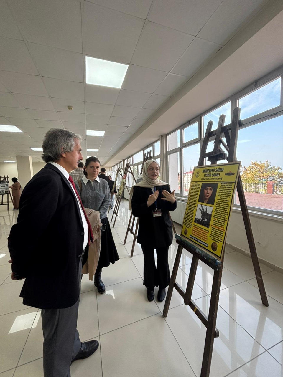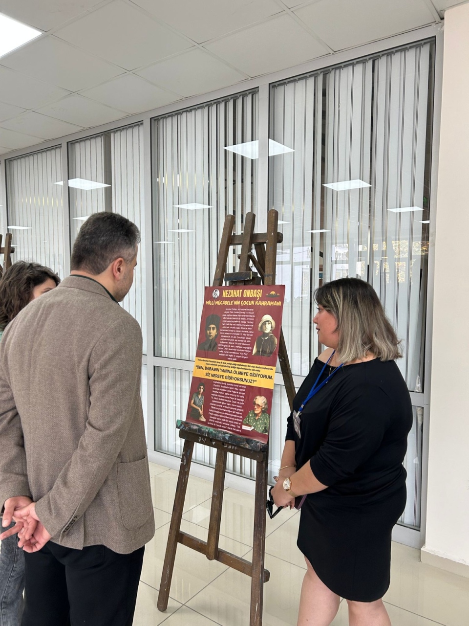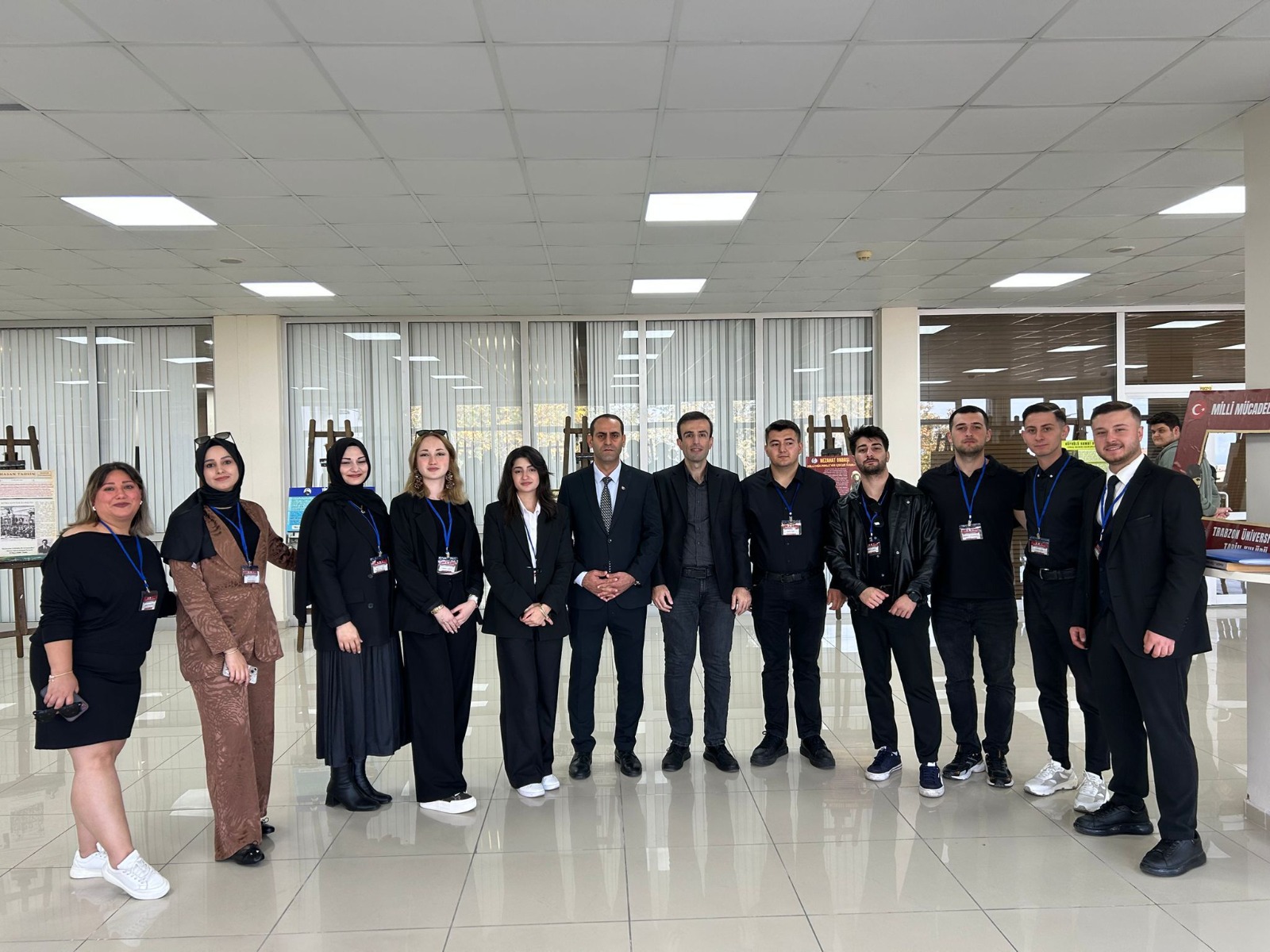 10.11.2025 tarihinde Trabzon Üniversitesi Tarih Kulübü’nün düzenlediği “Milli Mücadele’nin Kahramanları” isimli sergi Mahmut Goloğlu Kültür Merkezi Fuaye alanında gerçekleştirilmiştir. Rektör Yardımcımız Prof. Dr. Atilla ÇİMER, İnsan ve Toplum Bilimleri Fakültesi Dekanımız Prof. Dr. Bilal KIRIMLI ve birçok kıymetli akademisyen ile öğrencinin ziyaret ettiği sergide bilinen savaş kahramanlarının yanında geri planda kalan kahramanlarımızın da tanıtılması hedeflenmiştir. Bu kapsamda Tarih Bölümü öğrencilerinden oluşan ekip üyeleri ilgili kahramanlara ait posterlerin başında ziyaretçilere bilgi vermiştir. Sergiyi düzenleyen ve katılım sağlayan tüm akademisyenlerimize ve öğrencilerimize teşekkür ederiz.